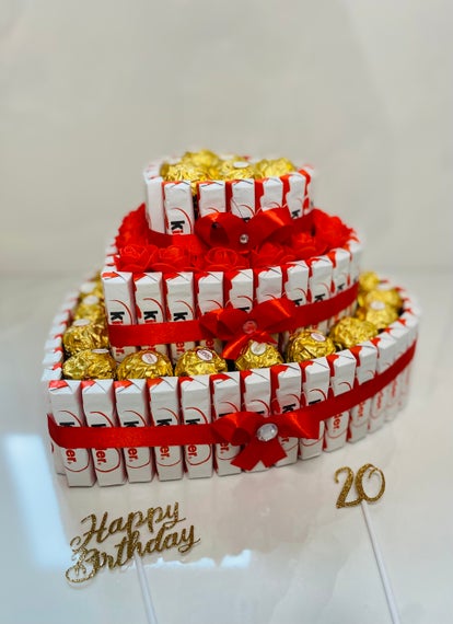 2 Stöckige Torte / Rot / Weiß / Gemischte Pralinen - 54,00 €