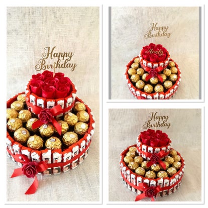 2 Stöckige Torte / Rot / Gold / Gemischte Pralinen - 54,00 €